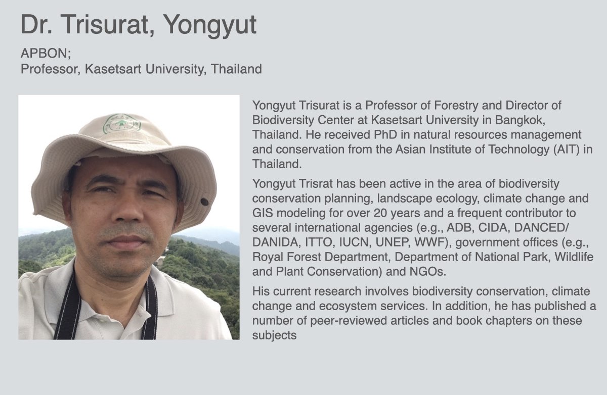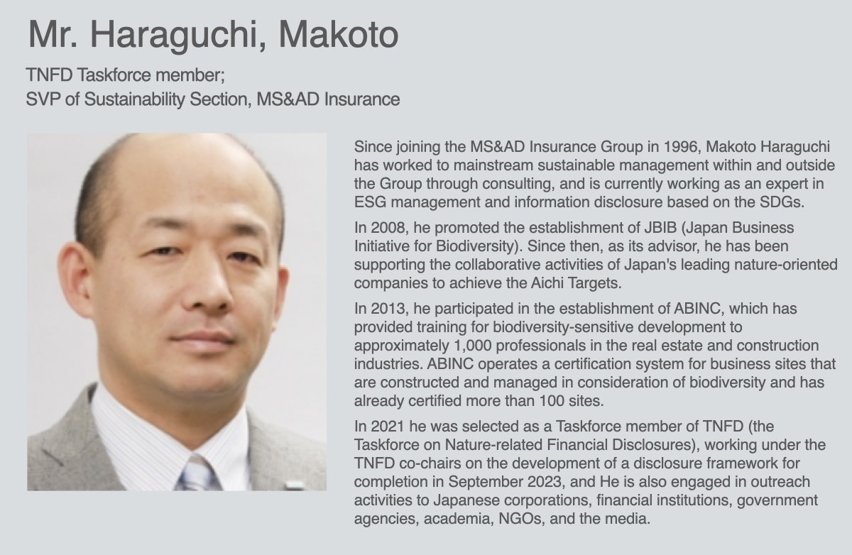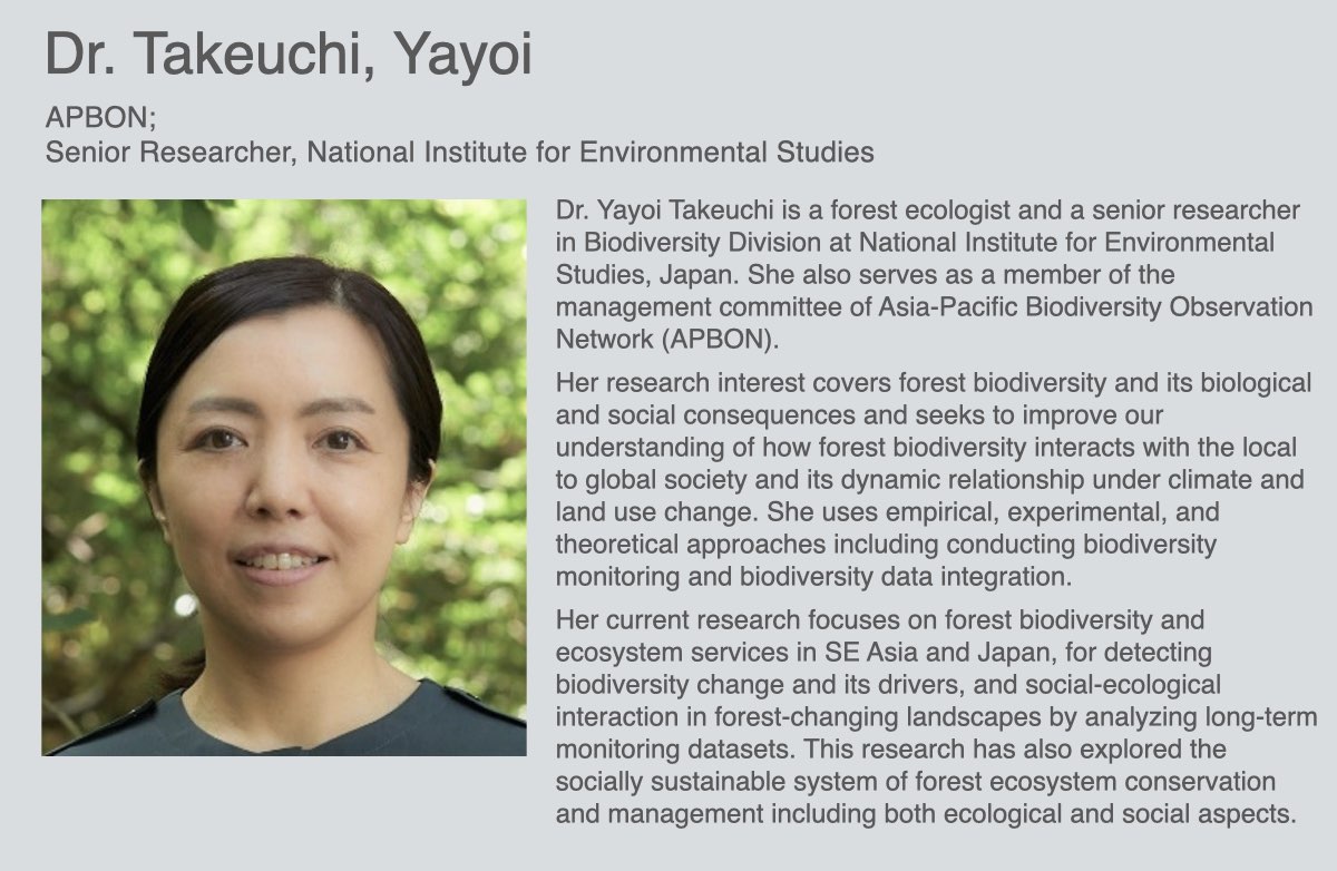Biodiversity is fundamental to our sustainable and healthy society, but it is under threats due to climate change and human activities. Recognizing that EO can provide critical information to respond to the growing needs from biodiversity conservation and ongoing initiatives such as Task Force on Nature related Financial Disclosures (TNFD) which promote ‘Nature positive’ society, this session discusses how EO data and the big data technologies contribute to the TNFD and related financial activities for private sectors through evaluating the biodiversity loss and gains from our economic activities. As making nature and biodiversity countable will be the first step to take for ongoing activities such as TNFD, we think these technology developments, cooperated with the biodiversity observations, are very important. This session showcases the latest big data program which should have significant impact for integrating nature into economic activity to make nature and biodiversity measurable. Panel discussion will be organized to seek further engagement and collaboration between the service provider and regional EO data provider (APBON).