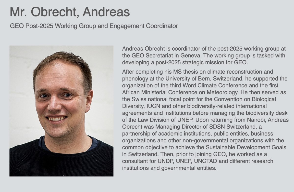 Mr. Obrecht, Andreas (GEO Post-2025 Working Group and Engagement Coordinator, GEO secretariat)